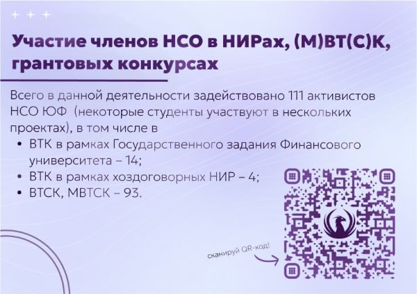 «Славься, храм наук и просвещенья!» - поётся в гимне нашего университета. В лучшем финансовом учебном заведении страны науке отводится важная роль. Созданное еще в 40-х годах ХХ века Научное студенческое общество занималось развитием научной деятельности среди студентов. Тогда перед НСО была поставлена задача стать кузницей интеллигентных, умных, сильных и успешных людей. НСО продолжает следовать этому завету и сегодня.