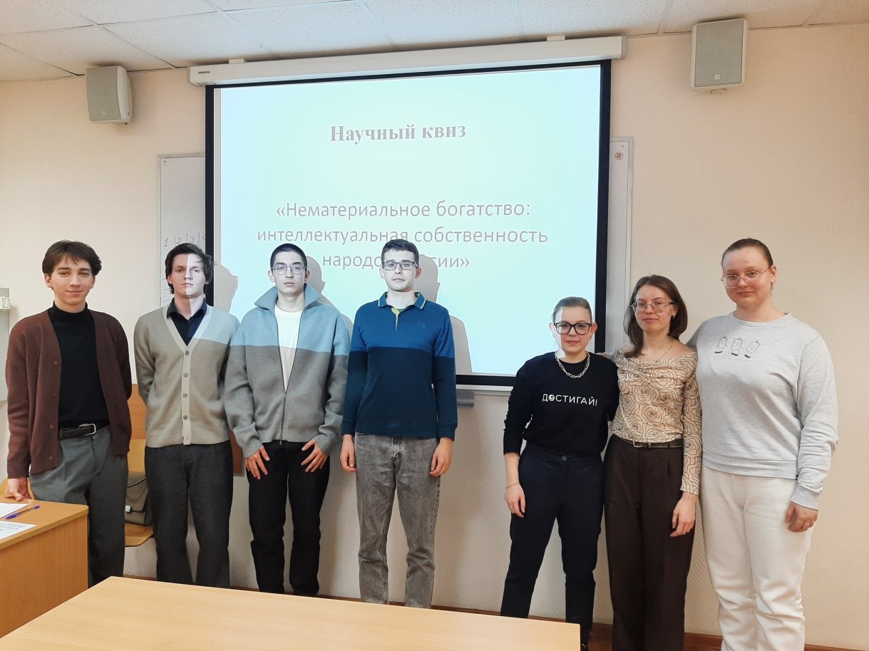 31 марта 2026 года на Юридическом факультете в рамках МНСК прошел студенческий квиз «Нематериальное богатство: интеллектуальная собственность народов России». Мероприятие, организованное в формате интеллектуальной битвы, позволило участникам не только проверить свои знания, но и глубже осмыслить роль права в сохранении культурного наследия нашей страны.