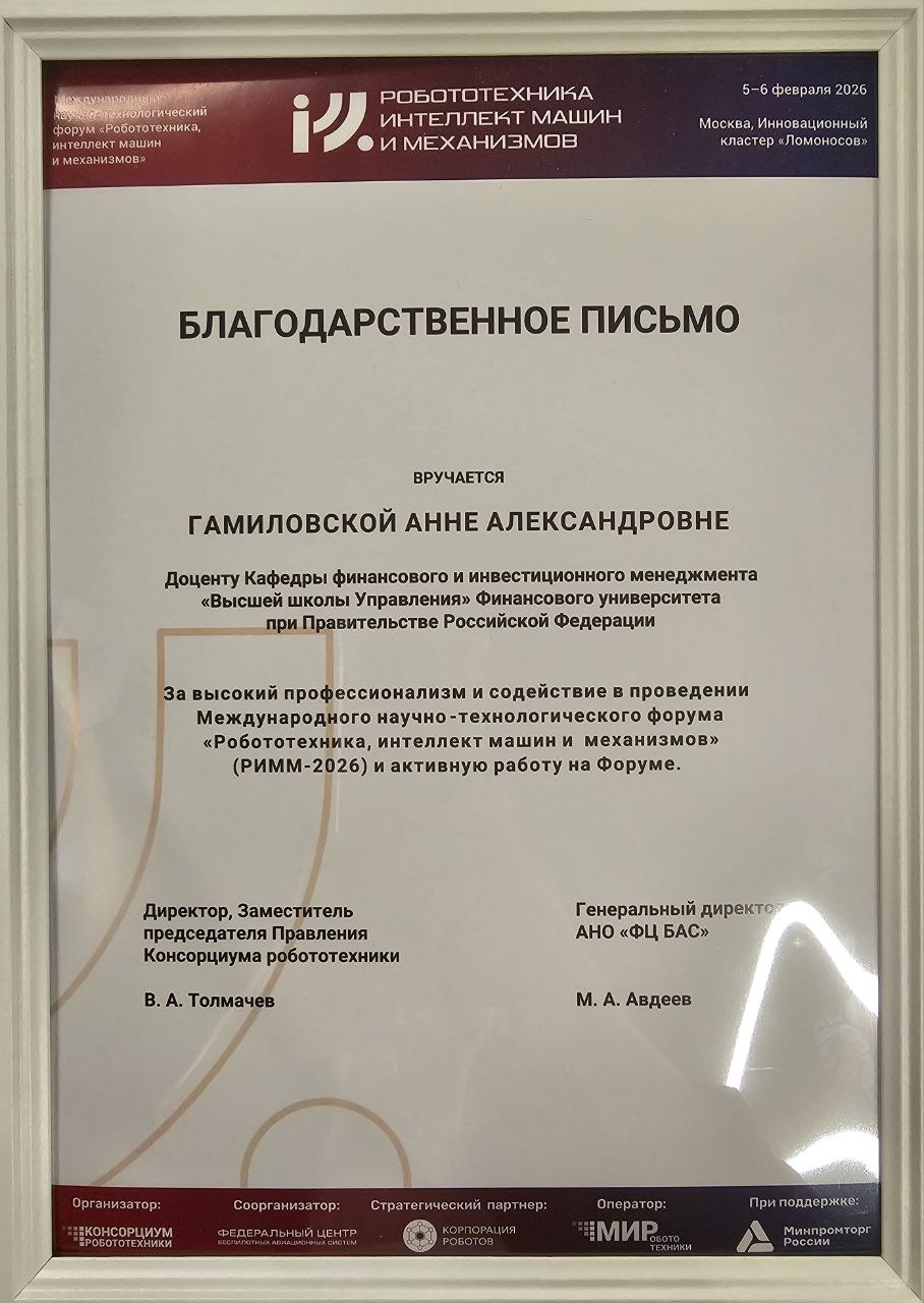 Кафедра финансового и инвестиционного менеджмента Факультета «Высшая школа управления» была представлена доцентом Анной Александровной Гамиловской.