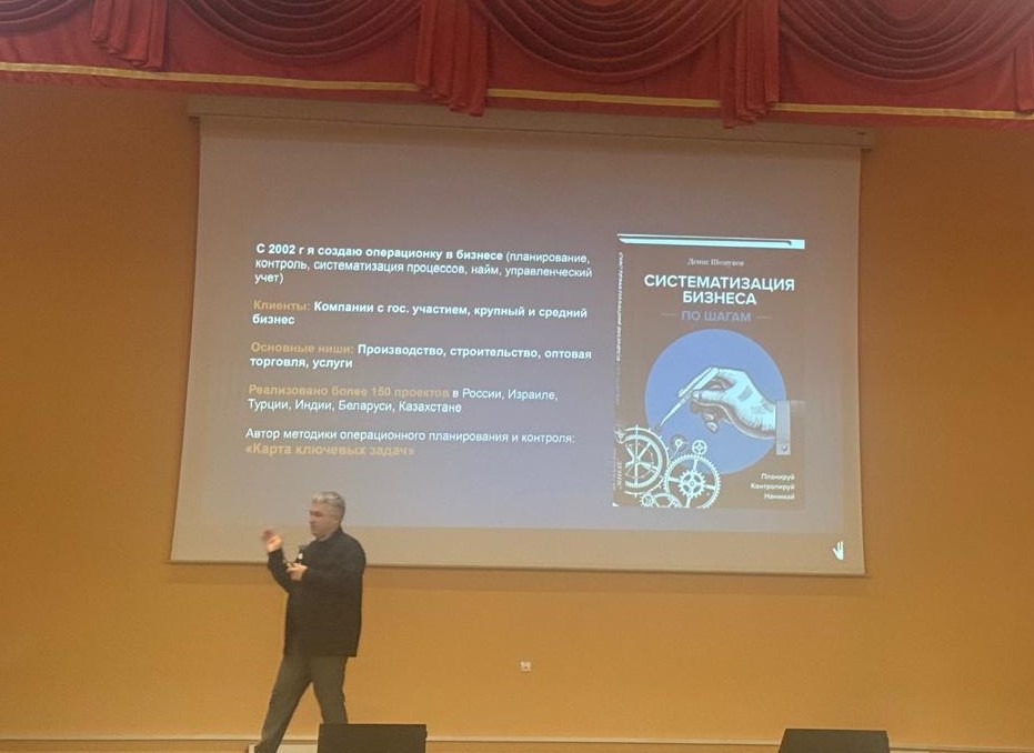 24 октября 2025 года для студентов Факультета «Высшая школа управления» в рамках дисциплины «Финансовый менеджмент» состоялся мастер-класс предпринимателя, бизнес-системщика, автора книги «Систематизация бизнеса по шагам» Дениса Шешукова.