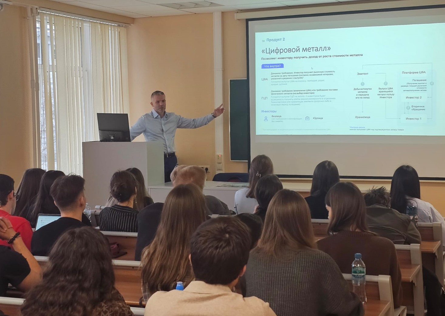 29 октября 2025 года студенты Факультета «Высшая школа управления в рамках дисциплины «Альтернативные инвестиции» приняли участие в мастер–классе «Цифровые финансовые активы: особенности нового рынка капитала и перспективы его развития», который провёл руководитель по развитию бизнеса ЦФА ООО «Компания БКС» Илья Владимирович Хабаров.