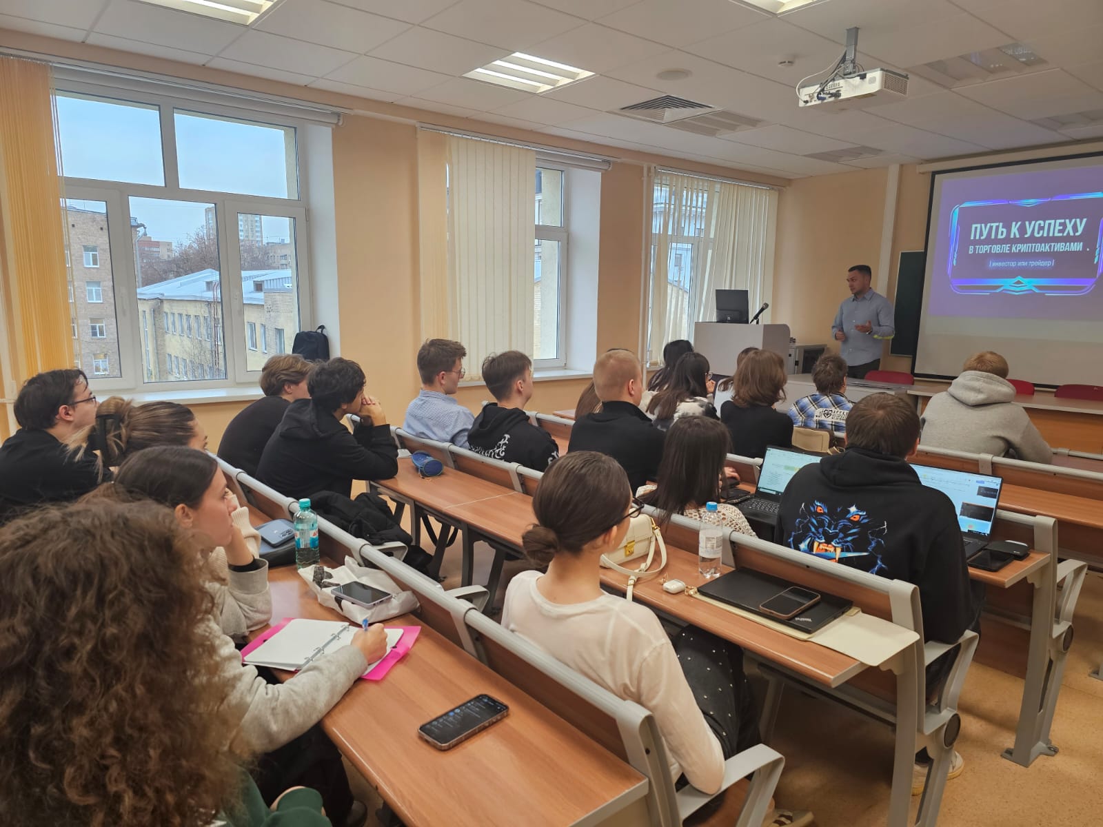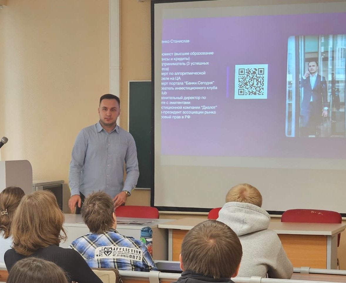 11 ноября 2025 года студенты Факультета «Высшая школа управления в рамках дисциплины «Альтернативные инвестиции» приняли участие в мастер–классе «Прикладное криптоинвестирование: инструменты, методы и стратегии портфеля», который провёл Бондаренко Станислав Геннадиевич, исполнительный директор по работе с эмитентами ООО «ИК ДИАЛОТ».