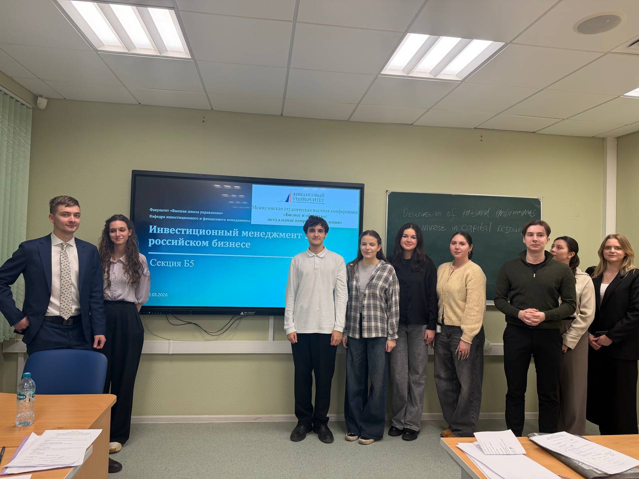 12 марта 2026 года в рамках Межвузовской студенческой конференции «Бизнес и общество: актуальные вопросы управления» Кафедрой финансового и инвестиционного менеджмента Факультета «Высшая школа управления» была организована работа секции «Инвестиционный менеджмент в российском бизнесе».