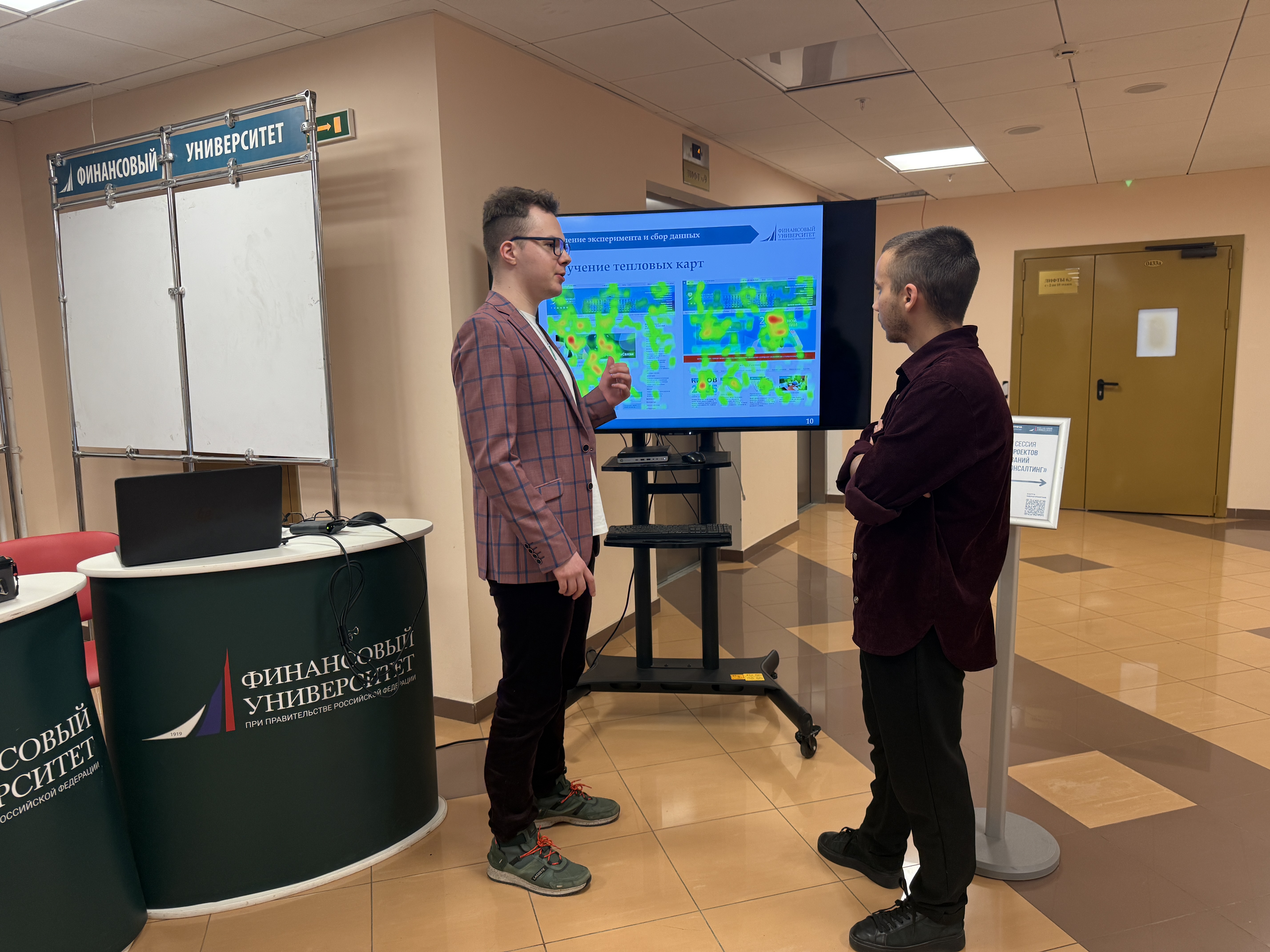 Кафедру маркетинга на выставке представили доцент Рожков Илья Вячеславович и аспирант первого года обучения Водопьянов Егор Михайлович, которые ознакомили собравшуюся аудиторию с возможностями применения нейротехнологий в исследовании поведения потребителей. Главной задачей участия представителей кафедры маркетинга в мероприятии стала демонстрация научного потенциала выпускникам Финуниверситета, работающим в реальном секторе экономики.