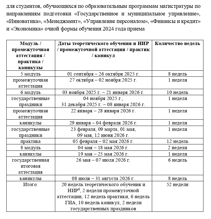Календарный учебный график на 2025/2026 учебный год (магистратура)