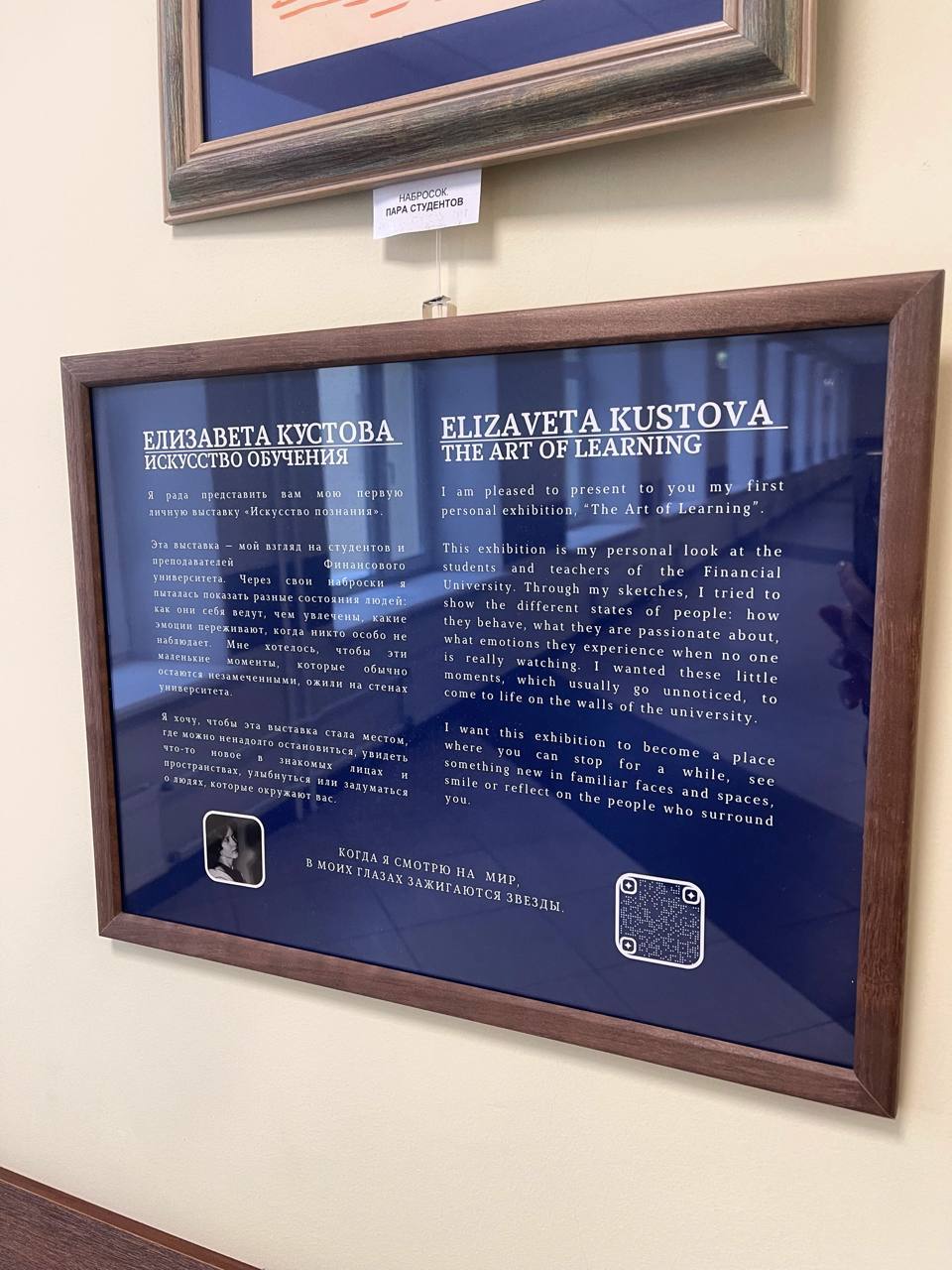 Экспозиция расположилась на 3 этаже, возле кабинета 327 на Верхней Масловке. Это особый взгляд Елизаветы на жизнь нашего факультета — в её работах запечатлены студенты и преподаватели в самые разные, подчас незаметные моменты: в раздумьях, в увлеченной работе, в живом общении.