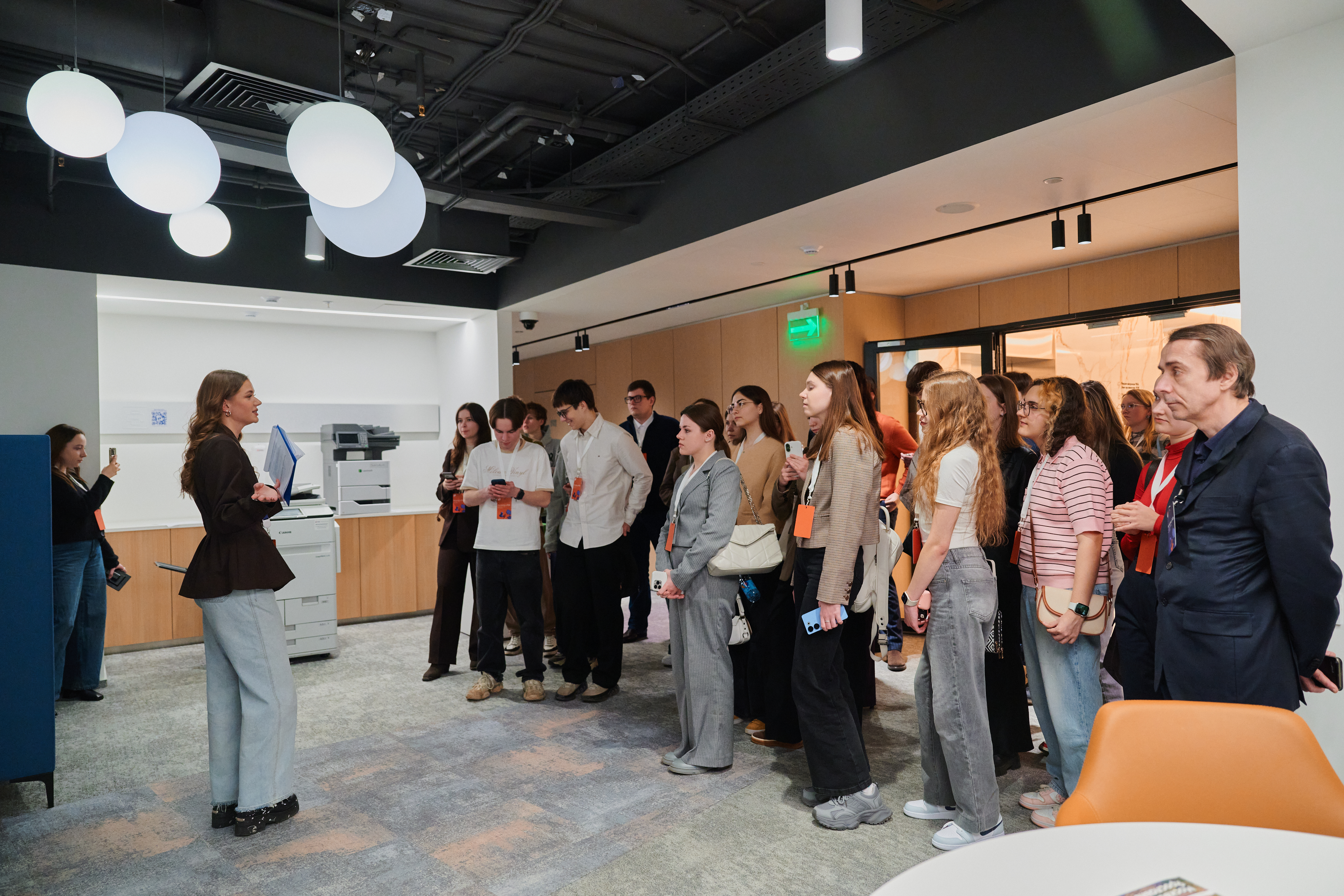 В ходе экскурсии студенты познакомились с корпоративной культурой банка, узнали о возможностях карьерного развития и стажировках для молодых специалистов. Особый интерес у участников вызвала экскурсия по офисному пространству, где они смогли увидеть современные форматы организации рабочей среды.