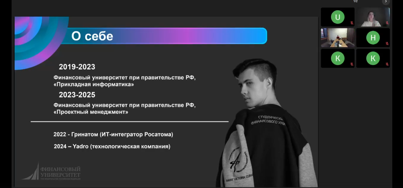 12 ноября в Финансовом университете при Правительстве РФ в рамках цикла мероприятий «Всё о профессиях» состоялся вебинар, посвящённый одной из самых востребованных профессий современности — проектный менеджер. Практическим опытом с будущими коллегами поделились успешные выпускники Факультета «Высшая школа управления»: Артём Теплов (ОП «Проектный менеджмент») и Кристина Семина (ОП «Управление инновациями и предпринимательство»).