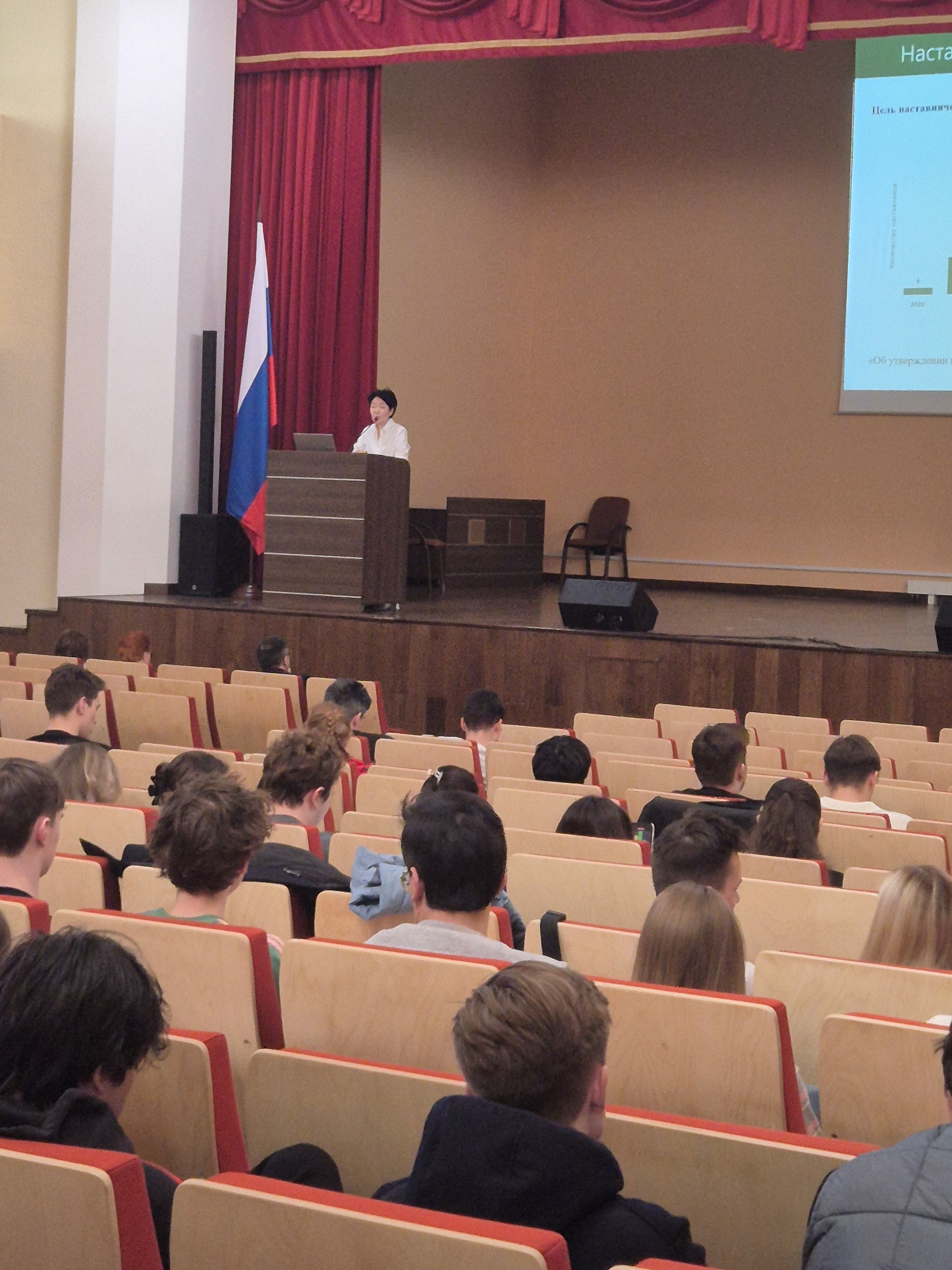 На встрече выступила Начальник отдела организации и мотивации труда Управления государственной службы и кадров Росимущества Шоводаева Элина Борисовна, которая подробно рассказала студентам о государственной службе в целом, о сфере деятельности Федерального агентства по управлению государственным имуществом, о возможностях прохождения практической подготовки и последующих карьерных треках в Агентстве. Кроме того, были озвучены меры социальной и материальной поддержки, а также порядок работы в организации системы наставничества для комфортной адаптации молодых специалистов.