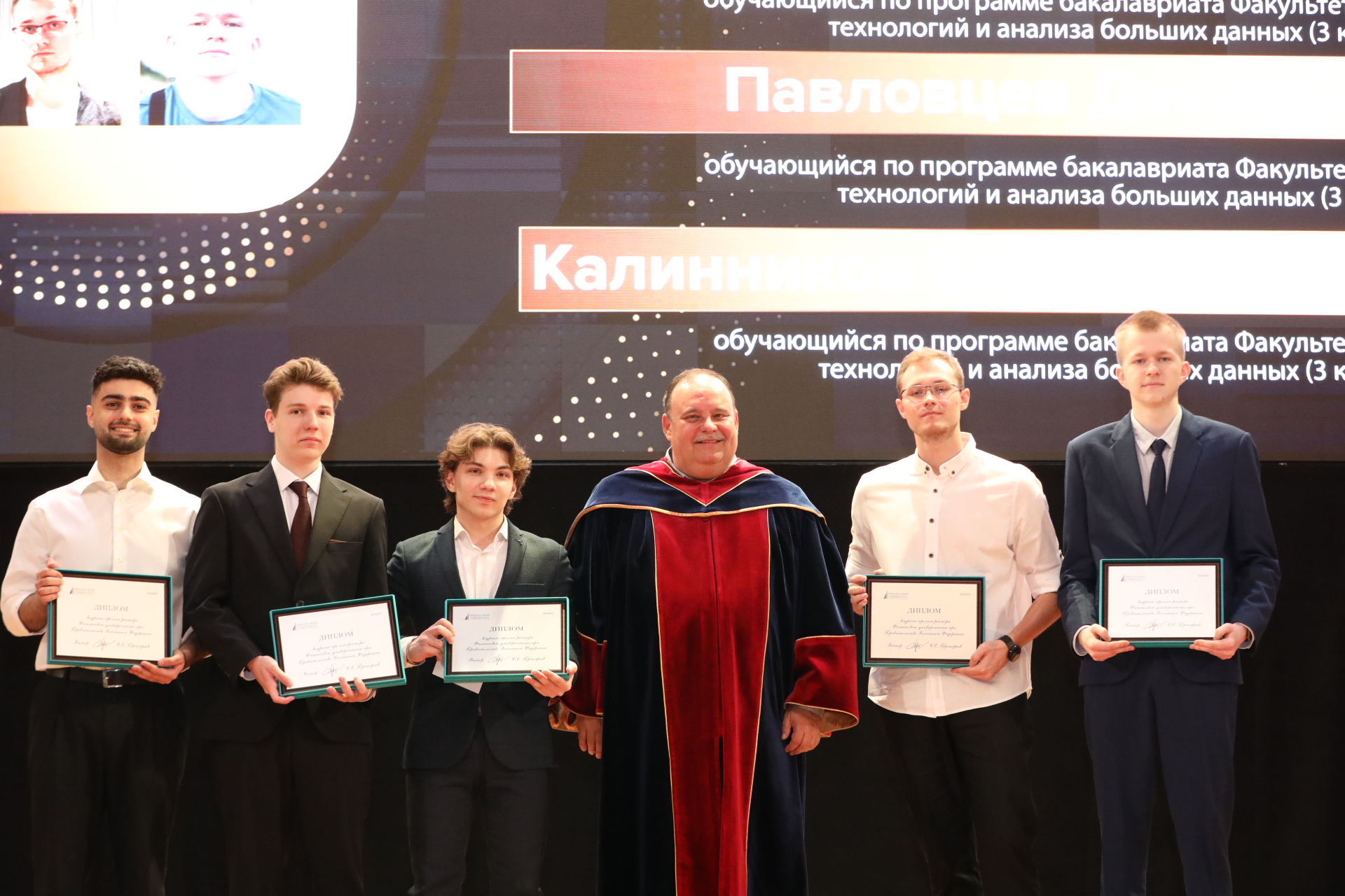В 2025 году конкурс «Лауреат премии ректора Финансового университета» прошел по 13 номинациям. По традиции награды лауреатам вручили три поколения ректоров Финансового университета – ректор Финансового университета С.Е. Прокофьев, президент Финансового университета М.А. Эскиндаров и почетный президент Финансового университета А.Г. Грязнова.