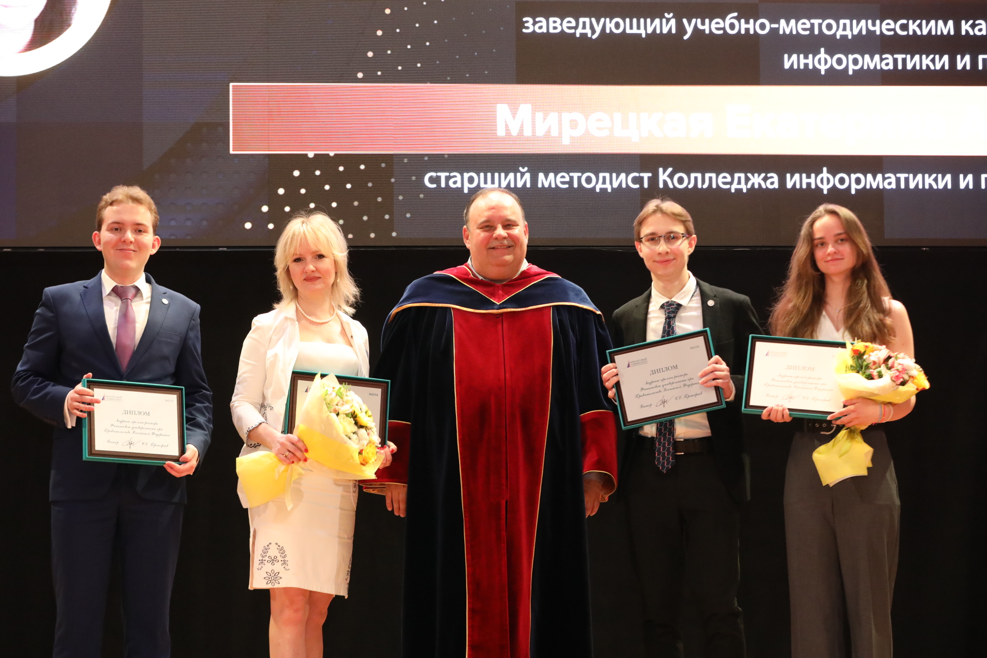 Открыл торжественную церемонию награждения ректор Финансового университета Станислав Прокофьев. В приветственном слове ректор отметил рост интереса к конкурсу и расширение состава номинантов: «Премия ректора – это повод поблагодарить тех, кто своим трудом кует славу Финансового университета. В прошлом году мы впервые в истории вуза вошли в топ-200 лучших университетов мира по экономике. Вместе с вами – людьми, которые стремятся сделать наш вуз лучше – мы решаем масштабные задачи и запускаем флагманские проекты во имя нашей большой страны. Сегодня заслуженные награды получат преподаватели -участники образовательного проекта для бойцов и героев СВО, команда организаторов Всероссийского семейного фестиваля сбережений и инвестиций, авторы уникальной образовательной инициативы в сфере финтеха и многие другие наши талантливые преподаватели и активные студенты не только из Москвы, но и представители 8 филиалов университета», – обратился Станислав Прокофьев к победителям конкурса