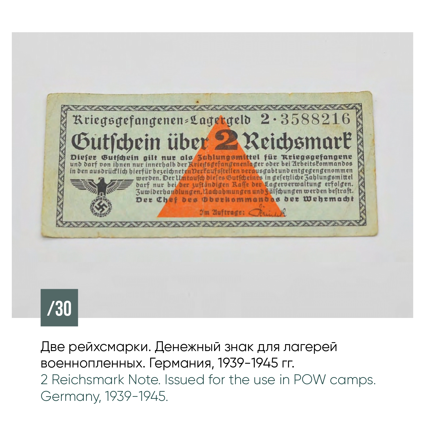 В период Второй мировой войны немецким правительством было инициировано введение в обращение специальных платежных средств для подрыва национального налично-денежного обращения на оккупированных территориях, и в первую очередь в регионах Советского Союза: оккупационные рейхсмарки, оккупационные карбованцы, «деньги» концентрационных лагерей и гетто. Для выплаты денежного довольствия солдатам и офицерам германской армии (вермахта) на подконтрольных территориях использовались специальные расчетные знаки.