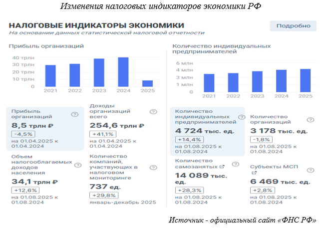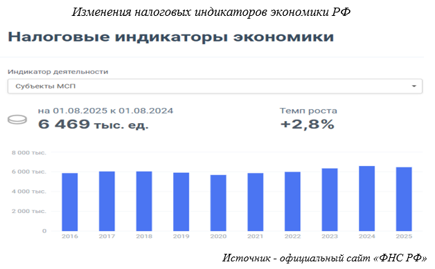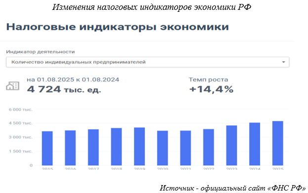 Также Валерий Иванович Хоружий, доктор экономических наук, профессор кафедры налогов и налогового администрирования Факультета налогов, аудита и бизнес-анализа Финансового университета при Правительстве Российской Федерации, считает, что существенный вклад в поступления налоговых и иных обязательных платежей в бюджетную систему Российской Федерации в 2025 году внес прирост малого и среднего бизнеса за счет увеличения зарегистрированных индивидуальных предпринимателей в объеме 4724 тыс. ед. (прирост +14,4%).