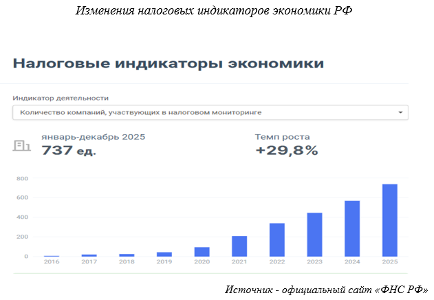 Необходимо отметить существенный рост налогоплательщиков, присоединившихся к национальной системе налогового мониторинга разработанной Федеральной налоговой службой, которая призвана обеспечивать особый вид налогового контроля на добровольной основе для налогоплательщика. Данная форма взаимодействия налогоплательщика как крупного, так и среднего бизнеса с ФНС предполагает автоматический обмен информацией бухгалтерского и налогового учета, что существенно повышает контроль за достоверным исчислением и уплатой налогов и налогоплательщик в лице налогового органа фактически получает бесплатного аудитора в части требований ст. 105.26 Налогового кодекса.