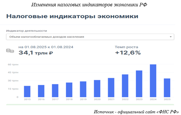 - объем налогооблагаемых доходов населения составил 34,1 трлн. рублей (прирост + 12,6%).