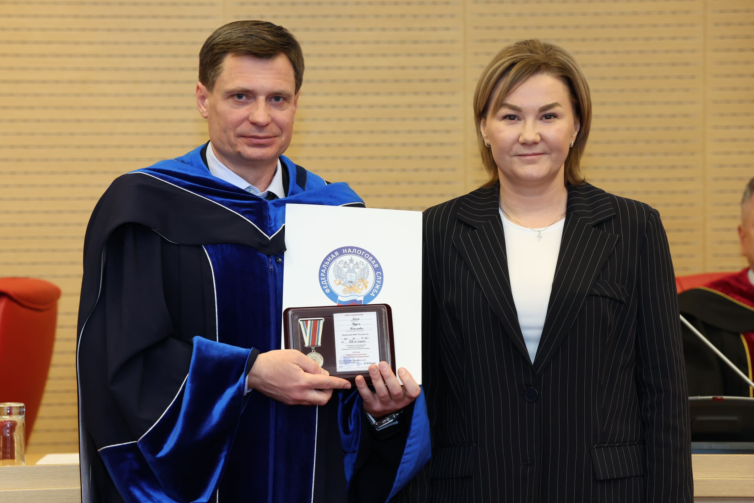 В начале заседания заместитель начальника Управления кадров Федеральной налоговой службы Валентина Лагирева вручила Благодарность руководителя Федеральной налоговой службы работникам Факультета налогов, аудита и бизнес-анализа: