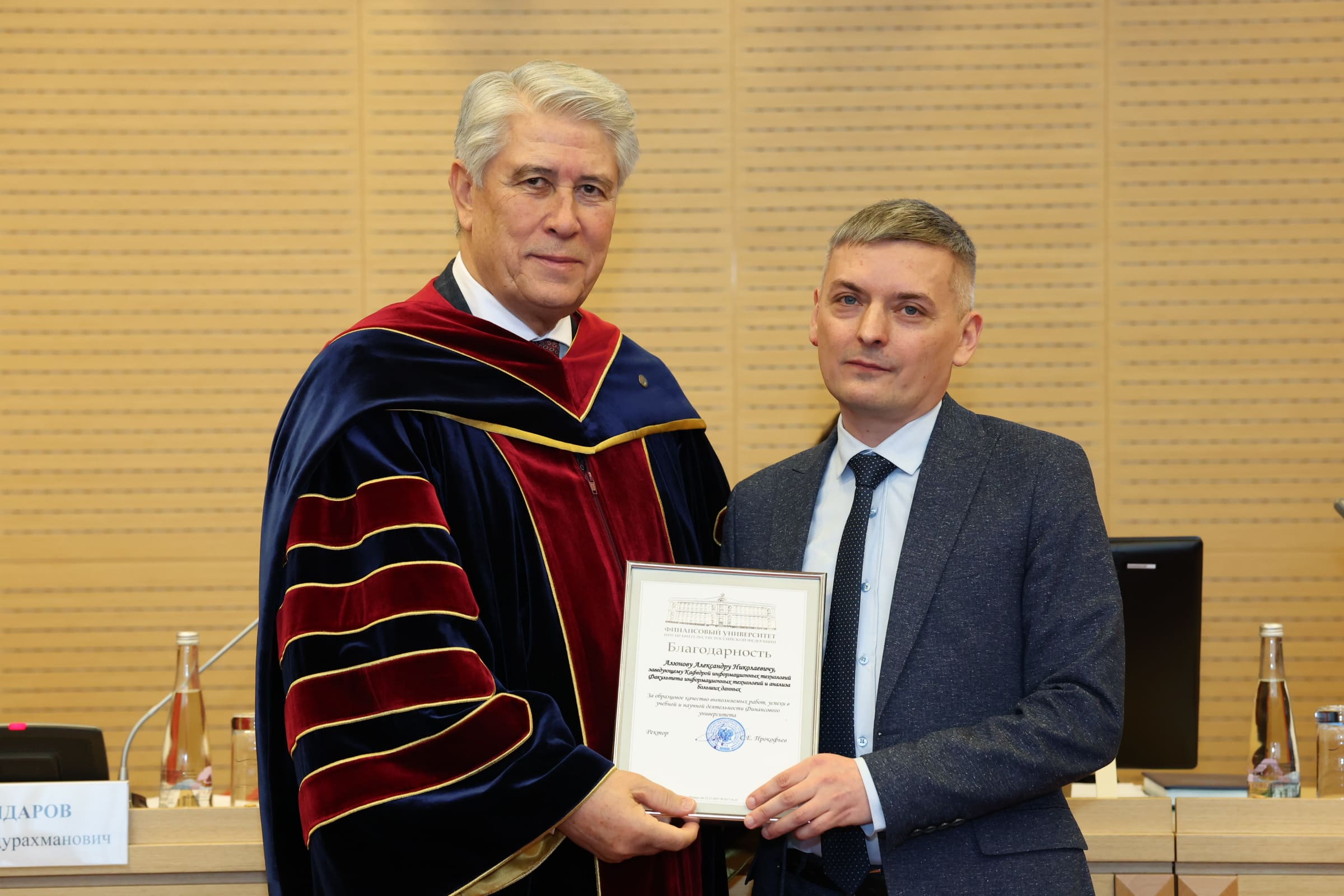 Благодарность ректора Финансового университета – Александру Алюнову, заведующему Кафедрой информационных технологий и анализа больших данных.