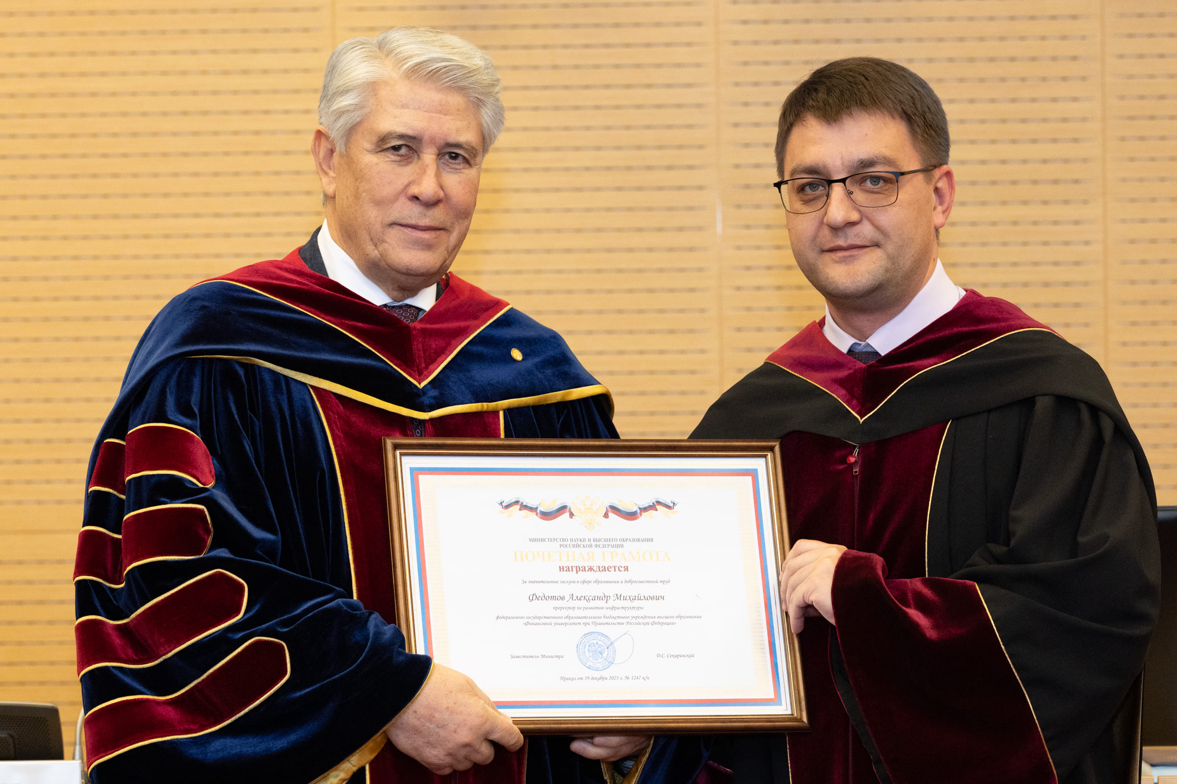 Почетную грамоту Министерства науки и высшего образования Российской Федерации – Александру Федотову, проректору по развитию инфраструктуры.